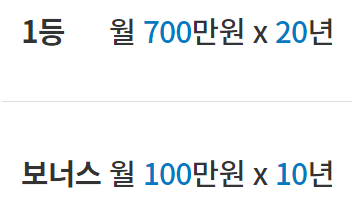 보너스 당첨금액: 월 100만원 x 10년