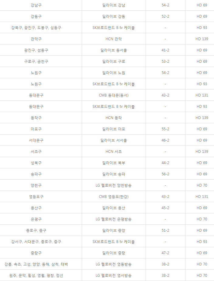 채널j 채널제이 편성표 j채널 채널번호를 소개합니다.